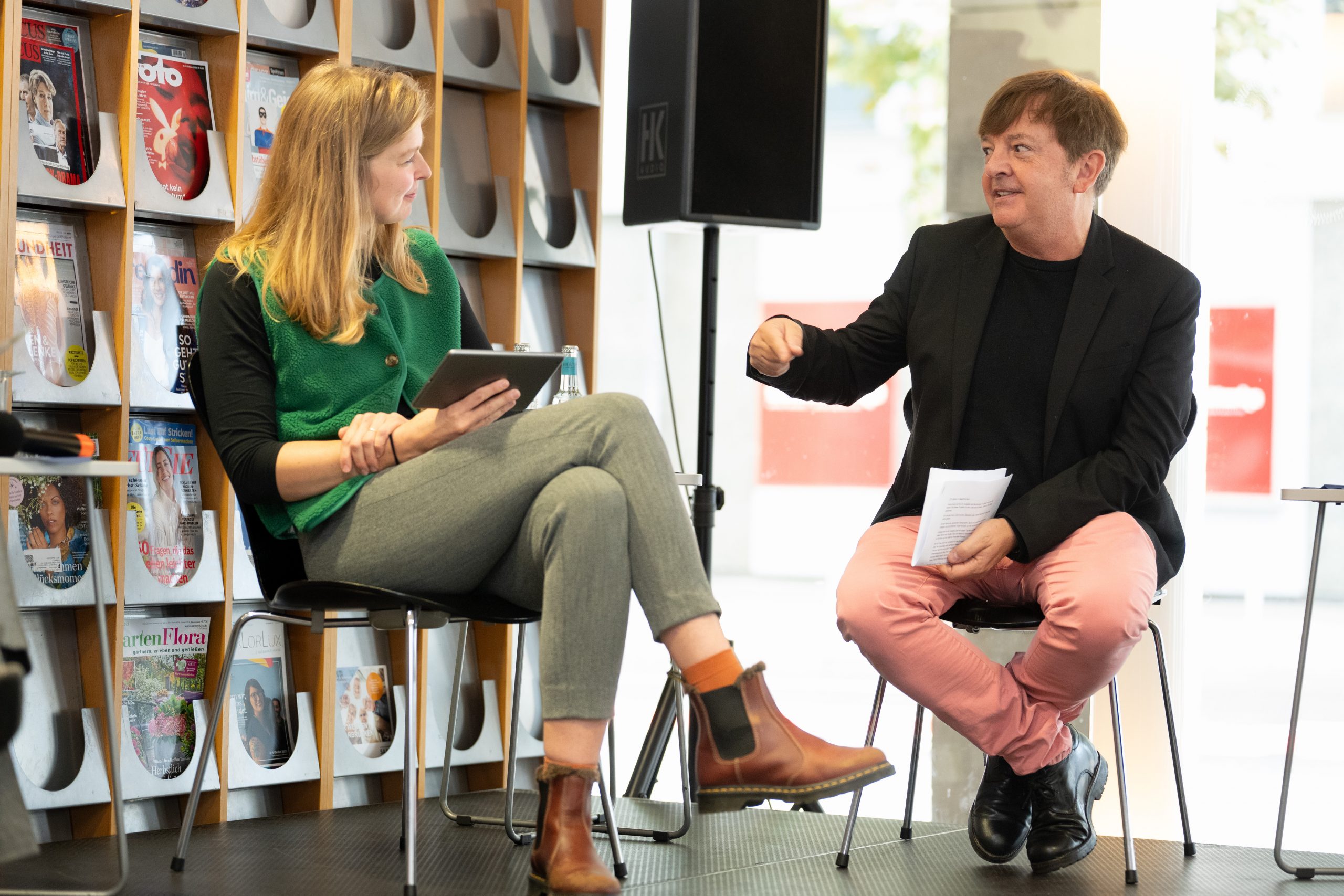 Marek Toman und Raija Hauck lesen in der Wissenswerkstatt aus "Die Konditorei zum schielenden Jim"