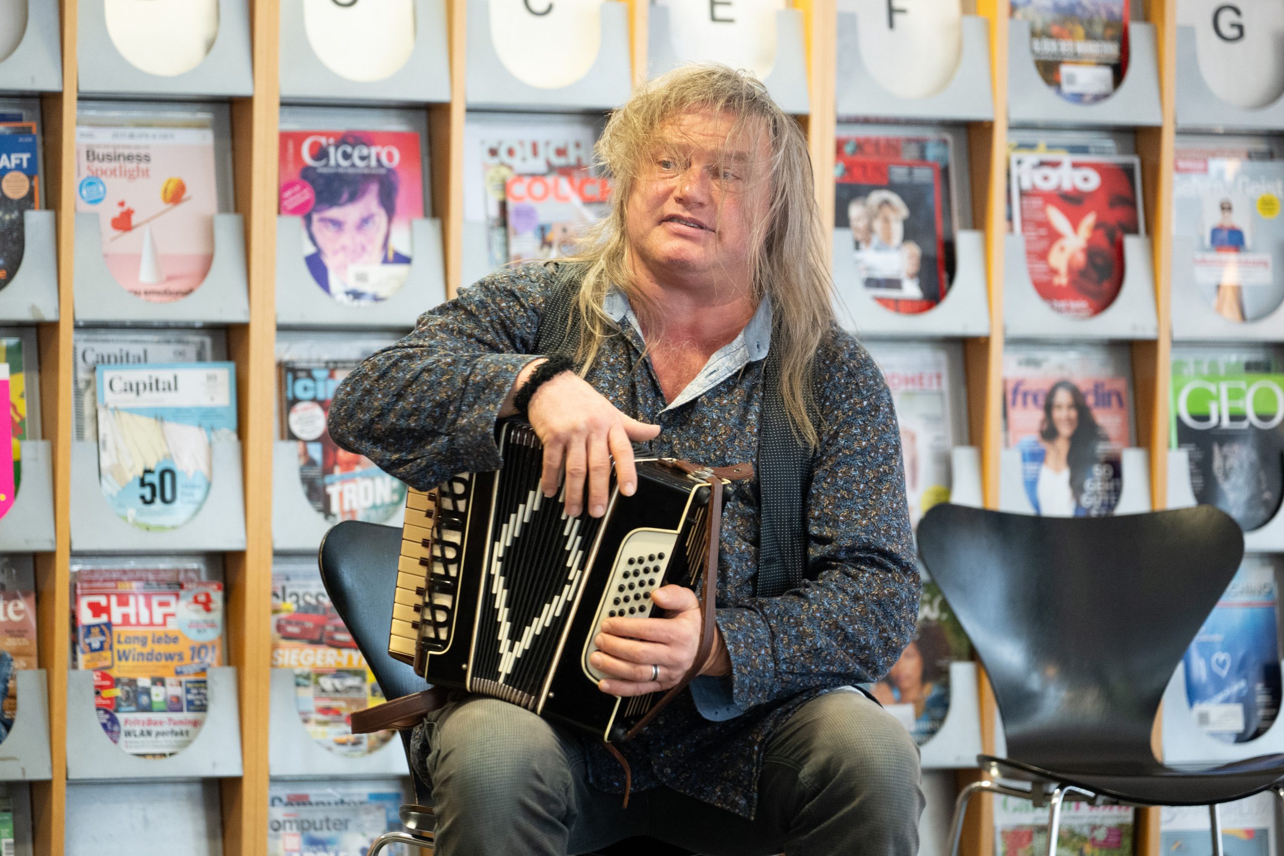 Jan Mixa spielt sein Stück "Fritz Rasselkopf" in der Kantine des Kulturzentrums am Eurobahnhof.